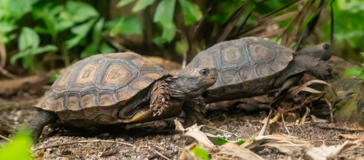 In WILDLANDS leven zeven Birmese bergschildpadden in het overdekte tropische regenwoud Rimbula: een volwassen man en aantal jongere exemplaren. Zij zijn te zien in de Jungle Arena.