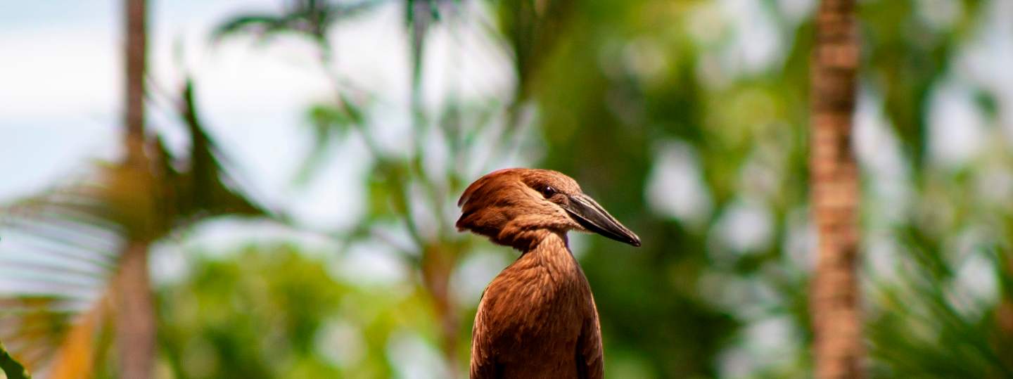 Een van de meest aparte vogels in Rimbula is toch wel de hamerkop (Scopus umbretta). Ze krijsen als aap, hebben een kop als een hamer en bouwen gigantische nesten op meters hoogte. Zo zie je weer dat deze jungle vol bijzonderheden zit.