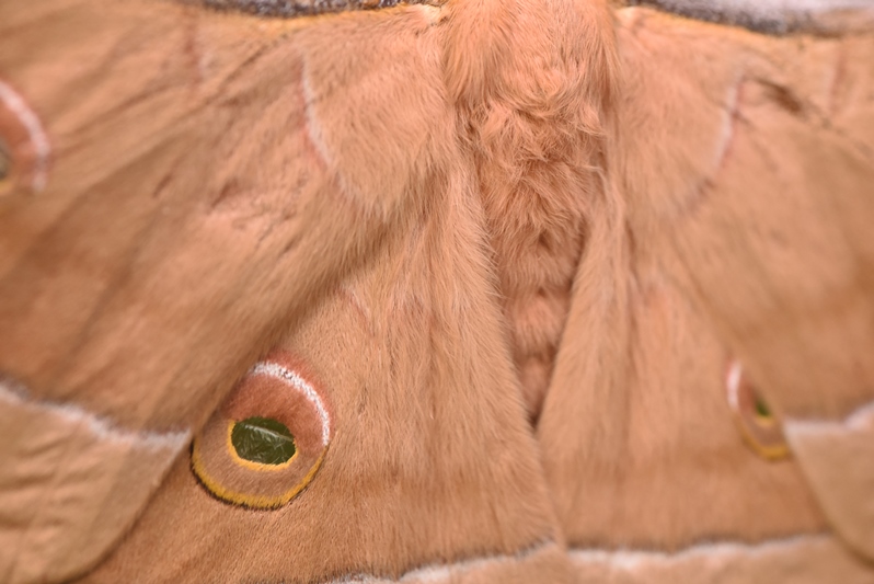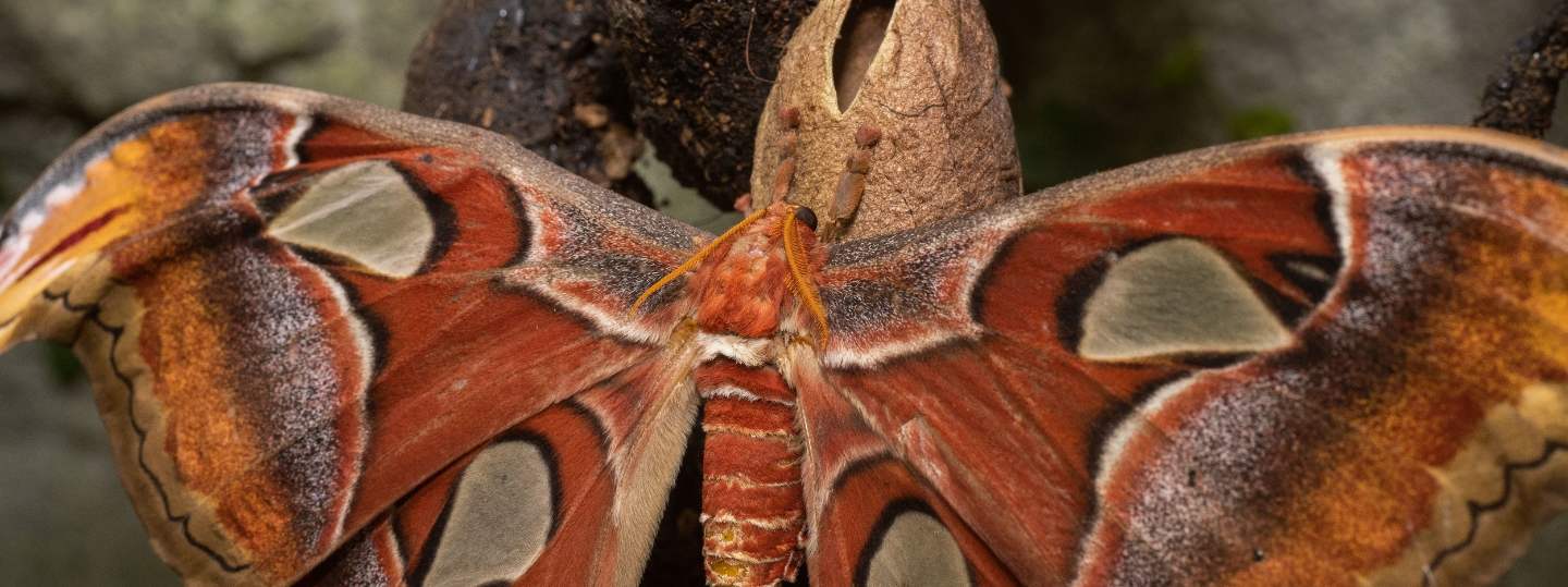 In de Vlindertempel zijn veel verschillende bijzondere vlinders te vinden, waaronder diverse soorten nachtpauwogen (Saturniidae). Deze opvallende vlinders vliegen niet rond, maar zitten de hele dag stil te wachten op een partner. Om niet ten prooi te vallen aan roofdieren, hebben ze imposante vleugels. Wij mensen vinden deze vleugels vaak prachtig, maar voor veel dieren werken ze afschrikkend.