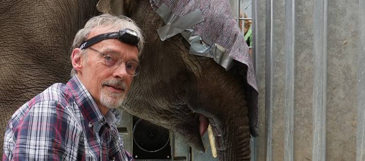Omdat de breuk in de slagtand zo hoog zat, was er een zenuw bloot komen te liggen. Dat doet niet alleen zeer, maar kan ook gaan ontsteken. Dierenarts Job Stumpel van WILDLANDS en gepensioneerd dierenarts Willem Schaftenaar (Diergaarde Blijdorp) hebben daarom het overgebleven stuk slagtand schoongemaakt en het gat gevuld.