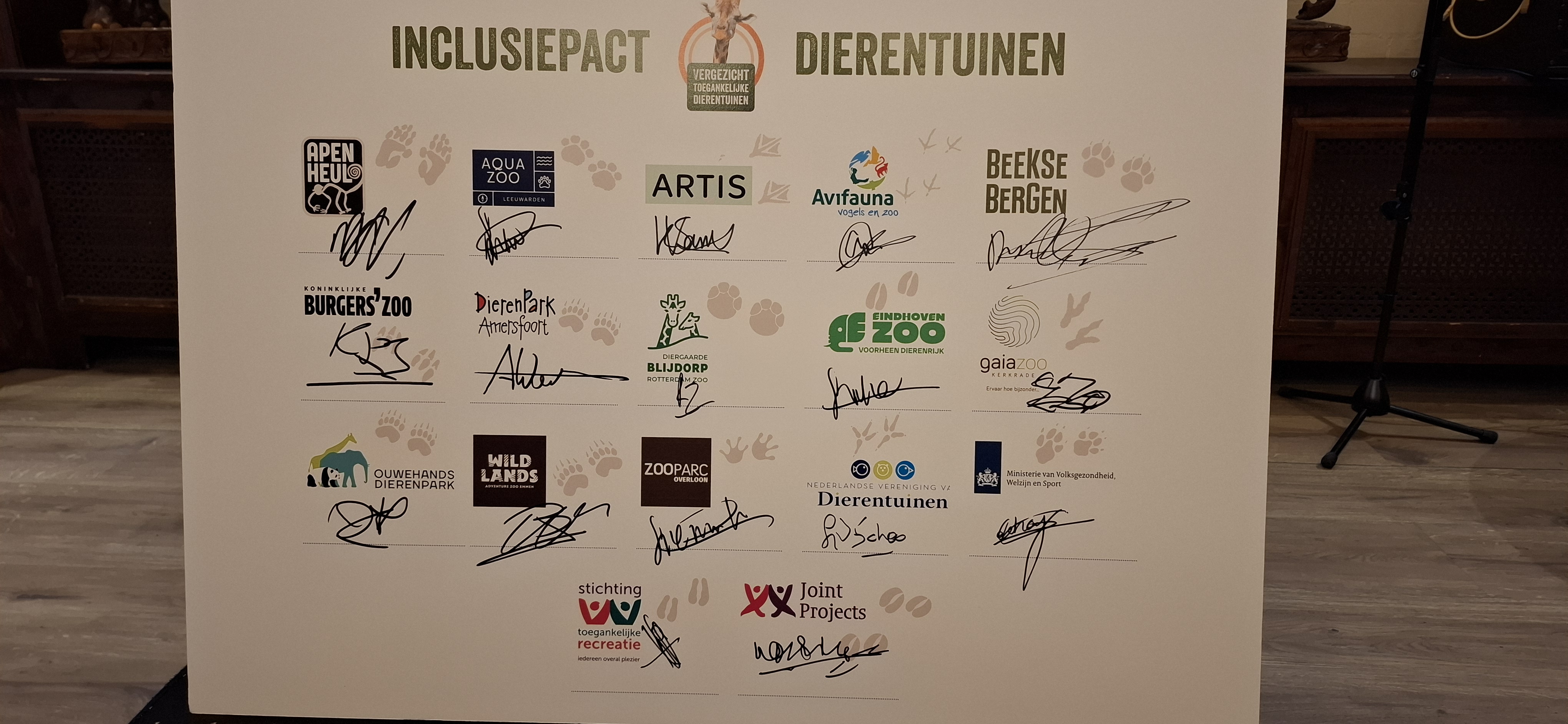WILDLANDS Adventure Zoo Emmen heeft een handtekening gezet onder het Inclusiepact Dierentuinen van Joint Projects. Met dit initiatief zetten dertien Nederlandse dierentuinen, de Nederlandse Vereniging van Dierentuinen (NVD), het Ministerie van Volksgezondheid, Welzijn en Sport, Stichting Toegankelijke Recreatie (STR) en Joint Projects gezamenlijk hun sporen uit voor een nog inclusievere dierentuinwereld.